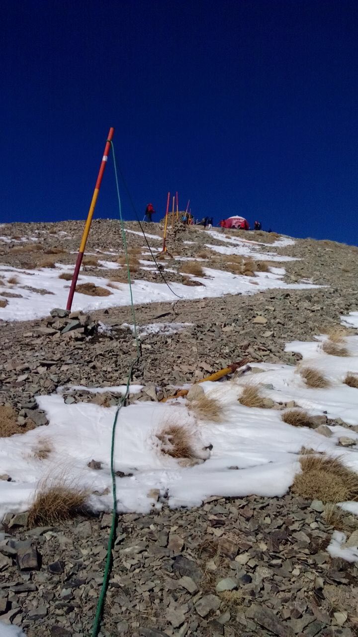 بنظر میرسه، علامت گذاری مسیر زیر قله روی یال اصلی بخاطر بادها و هوای معمولا ناآرامی باشه که اون چندصدمتر قبل قله داره…..خیلی ها شده در طوفان زیر قله، قله و پناهگاه رو رد کردن و سر از پایین ایستگاه هفتم درآوردن وکلی انرژی صرف کردن برگردن قله!